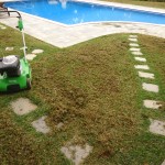 Στο συγκεκριμένο ταλαιπωρημένο χλοοτάπητα κρίθηκε απαραίτητη η άμεση διενέργεια της προαναφερθείσας εργασίας με ταυτόχρονη αφαίρεση των φυτικών υπολειμμάτων και επισπορά για ανανέωση και πύκνωσή του.