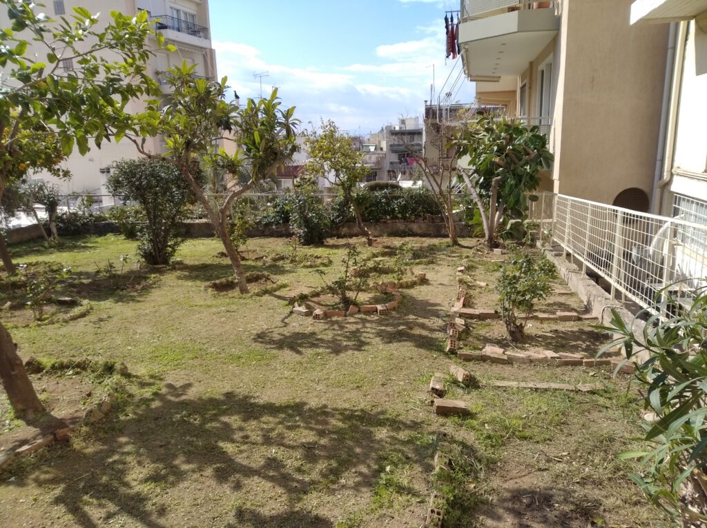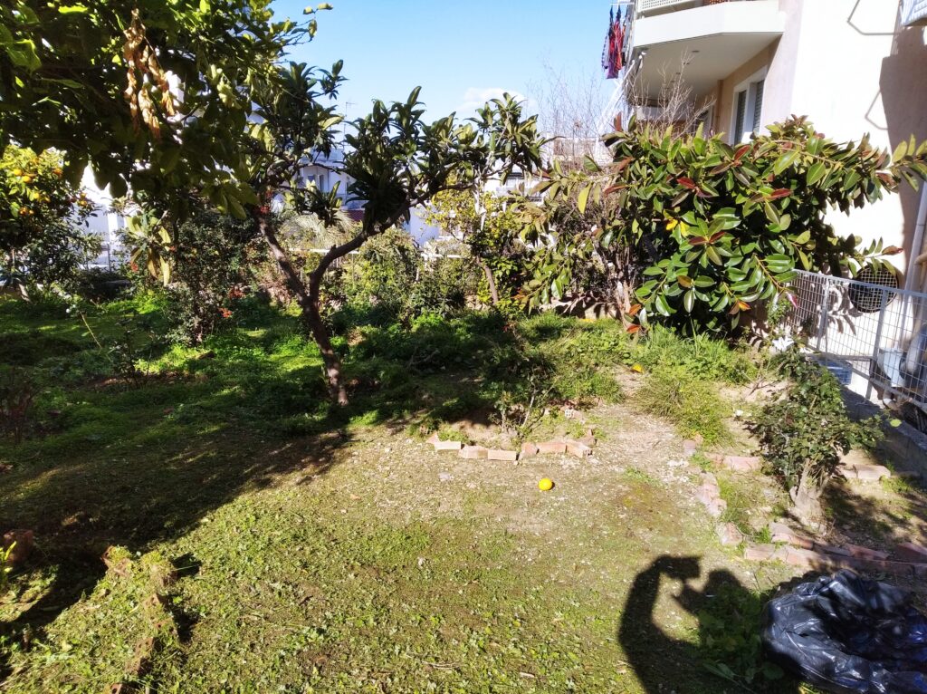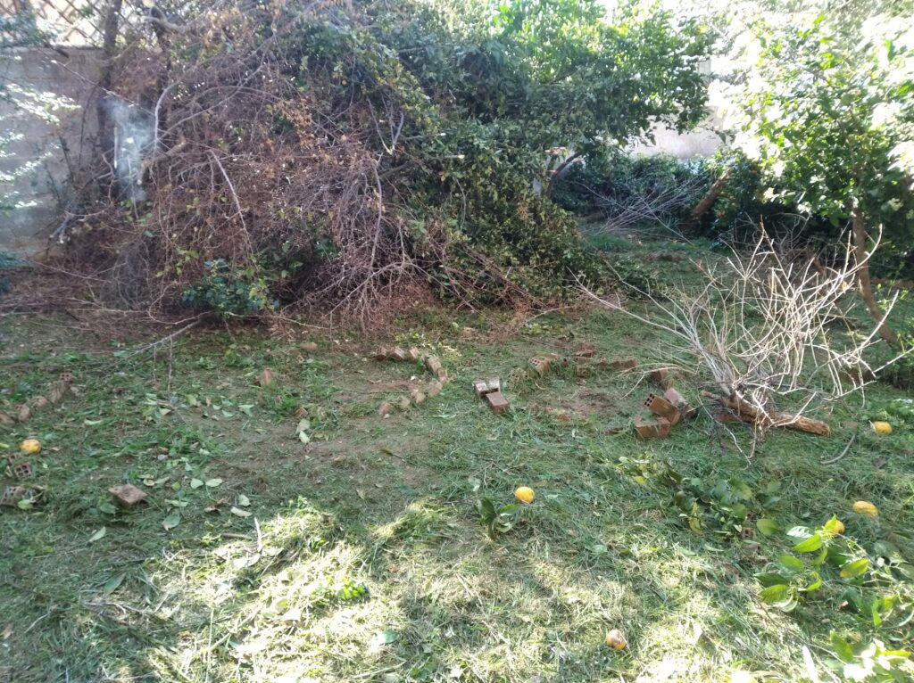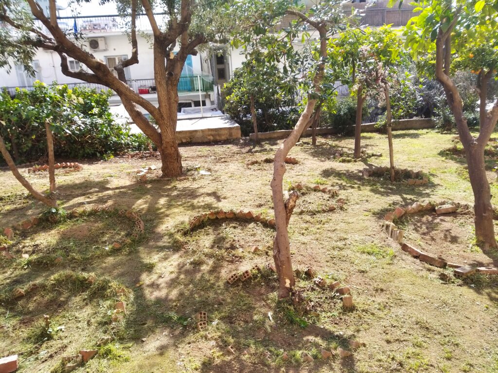 Οικόπεδο στο πίσω μέρος πολυκατοικίας στην Ηλιούπολη στο οποίο φιλοξενούνται πολλά δένδρα, κυρίως εσπεριδοειδή αλλά και Ροδιές, Ελιά, Φίκος ελαστικοφόρος, Βουκαμβίλλια. Ακόμη υπάρχουν διάφοροι θάμνοι όπως Πυράκανθος, Πικροδάφνη, Βιβούρνο, Δάφνη Απόλλωνος και Τριανταφυλλιές. Το κλάδεμα των δένδρων δύσκολο λόγο των πολλών ετών που τα δένδρα είχαν να κλαδευτούν. Συνέπεια αυτού η απομάκρυνση από το χώρο μεγάλου όγκου φυτικής ύλης. Επιπλέον έγινε αποψίλωση και καθαρισμός της επιφάνειας του εδάφους.