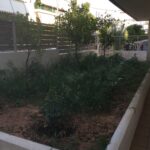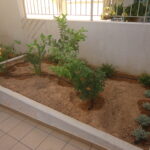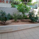 Στον περιβάλλοντα χώρο της πολυκατοικίας διατηρήθηκαν τα μικρά εσπεριδοειδή, τα οποία και πλαισιώθηκαν από άλλα ανθοφόρα και μη. Αποφασίστηκε δημιουργία μπορντούρας από Αμπέλια δεξιά της εισόδου και από Λιγούστρο αριστερά. Μπροστά από τις μπορντούρες φυτεύτηκαν πολλά ανθόφυτα όπως Διμορφοθήκες, Τριανταφυλλιές, Ρουέλια, Γκάουρα, κ.α., έρποντα φυτά όπως Δενδρολίβανο, Λαντάνα κίτρινη, Λεβαντίνη και νάνα φυτά όπως Αγγελική και Τούγια. Στην πίσω πλευρά του κτιρίου, στα κενά ανάμεσα στα θαυμάσια ψηλά Βιβούρνα που υπήρχαν, προστέθηκαν Φωτίνιες τις οποίες και περιμένουμε πλέον με ανυπομονησία να μεγαλώσουν και να ¨κοκκινίσουν¨ τον χώρο την άνοιξη με το κόκκινο νεαρό φύλλωμά τους. Εγκατάσταση αυτόματου ποτίσματος με στάγδην άρδευση σε ολόκληρο τον κήπο.