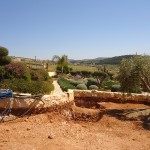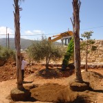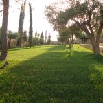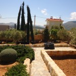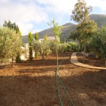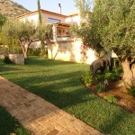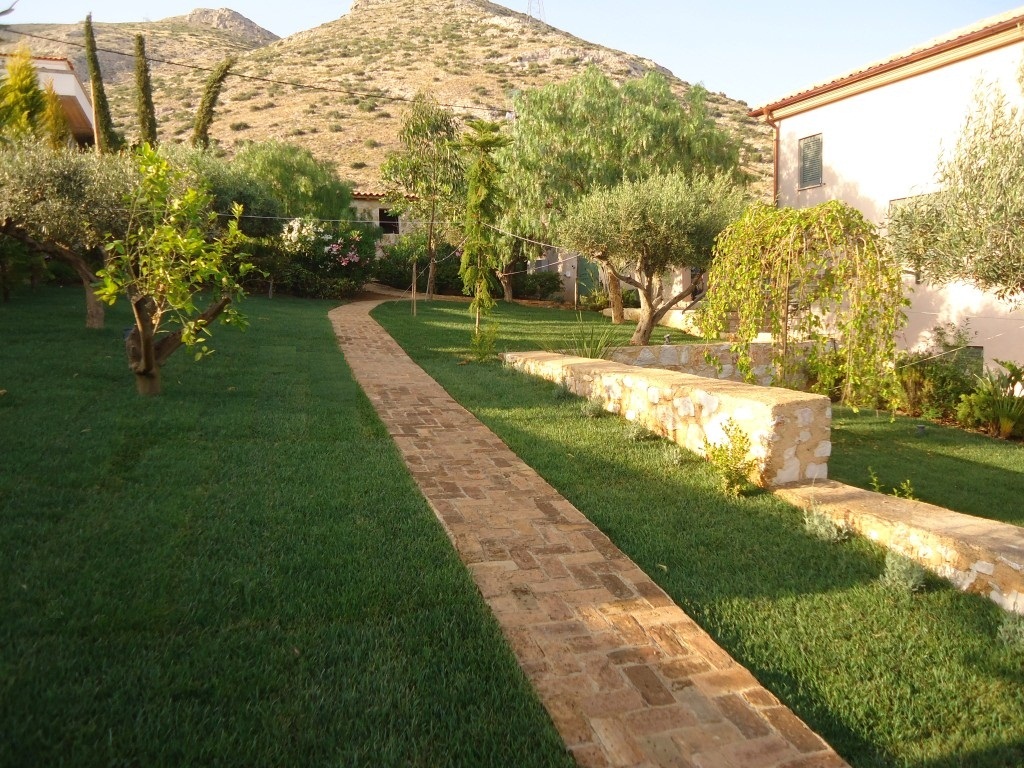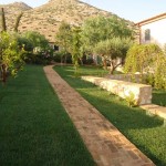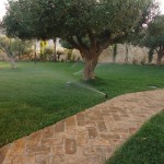 Η δημιουργία ενός χώρου πρασίνου σε έκταση 1.100 τετραγωνικών μέτρων με προβληματικό έδαφος (πετρώδες και ασβεστολιθικό), αποτέλεσε μία μεγάλη πρόκληση για εμάς, καθότι υπήρξε έντονη θέληση του ιδιοκτήτη για δενδροφύτευση και εγκατάσταση χλοοτάπητα στο συγκεκριμένο χώρο. Αποφασίστηκε λοιπόν απομάκρυνση του εδάφους μέχρι βάθους 40 εκατοστών με χρήση μηχανημάτων και αντικατάστασή του με επιλεγμένο χώμα, κατάλληλο για το συγκεκριμένο σκοπό. Επιπρόσθετα, στα σημεία δενδροφύτευσης πραγματοποιήθηκε αντικατάσταση χώματος μέχρι βάθους ενός και παραπάνω μέτρου με σκοπό την καλύτερη ανάπτυξη του ριζικού συστήματος των δένδρων και την ευδοκίμηση αυτών. Με το τέλος των χωματουργικών εργασιών φυτεύτηκαν δένδρα μεγάλης ανάπτυξης με ιδιαιτέρως αυξημένο κόστος και ακολούθως προχωρήσαμε στη μελέτη, σχεδιασμό και εγκατάσταση υπόγειου ποτίσματος με πλήρη αυτοματισμό. Η ολοκλήρωση του έργου επετεύχθη με την εγκατάσταση έτοιμου χλοοτάπητα. Το αποτέλεσμα ιδιαιτέρως εντυπωσιακό με απόλυτη ικανοποίηση του ιδιοκτήτη.