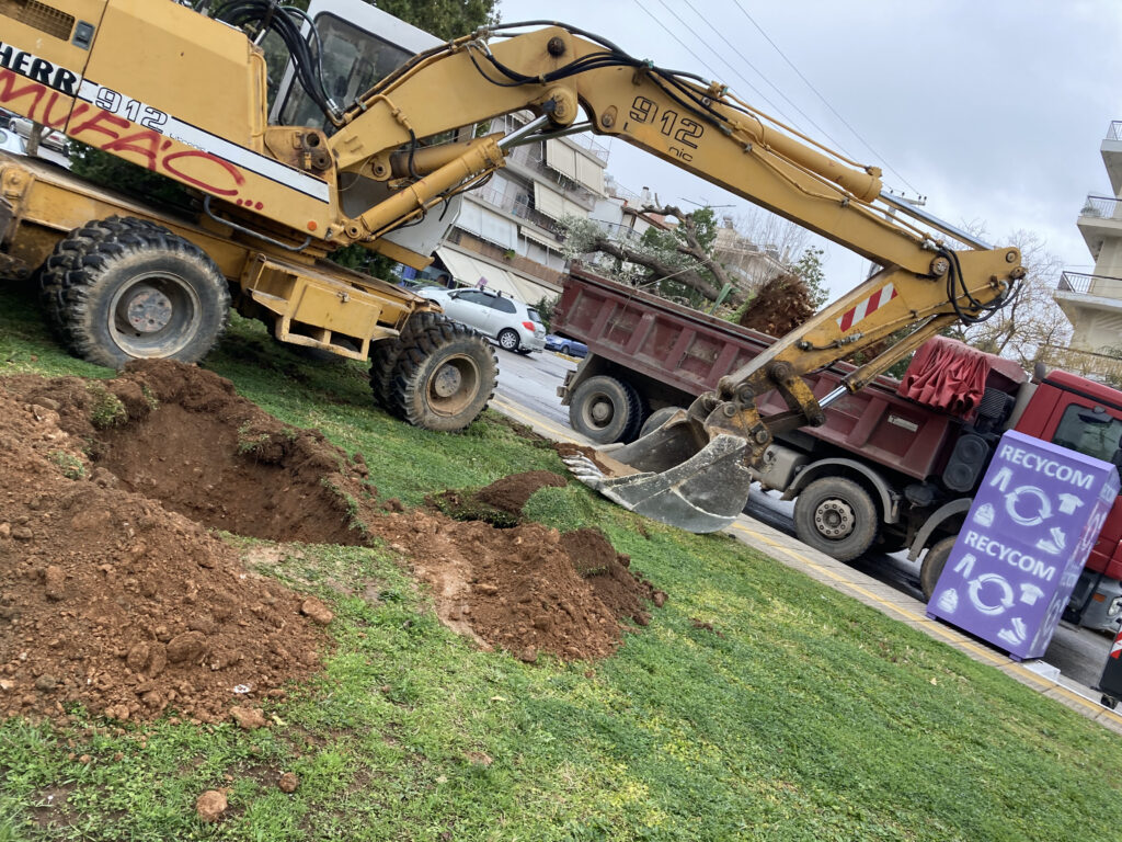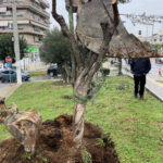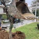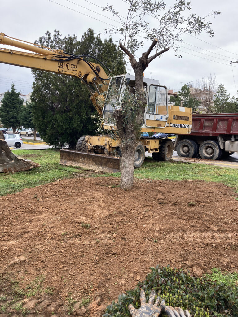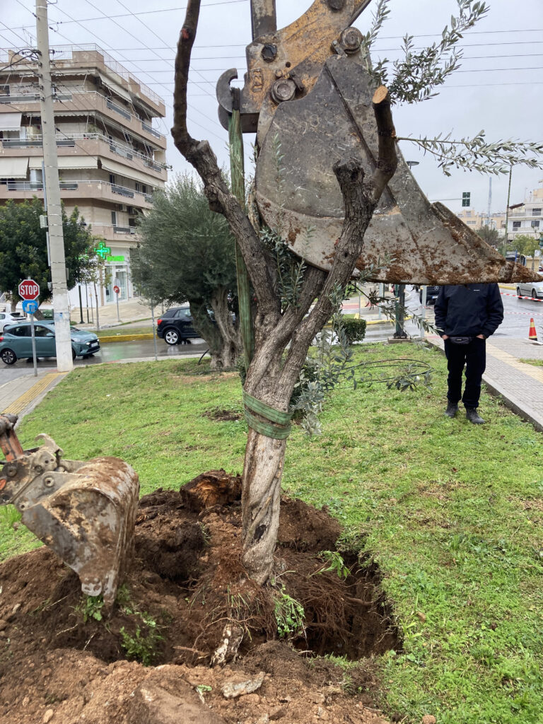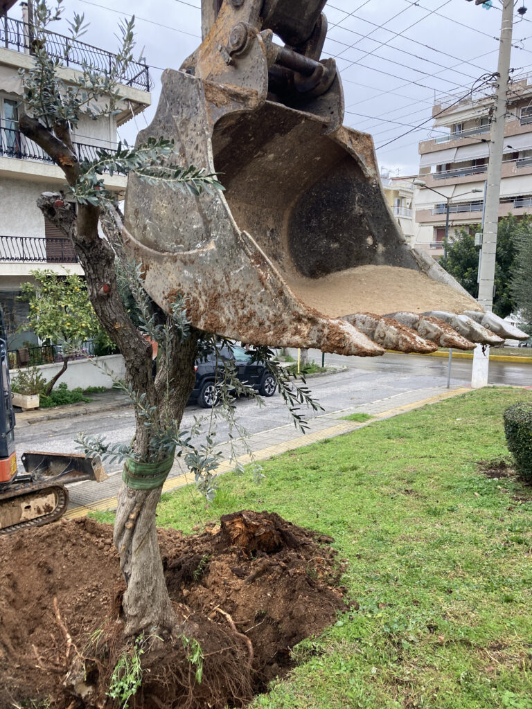 Μεταφύτευση μεγάλων δέντρων Μεταφύτευση 3 μεγάλων δέντρων Ελιάς από πεζοδρόμιο σε πάρκο του δήμου Ηλιούπολης. Η εργασία απαιτούσε τη χρήση βαρέων (σκαπτικών και μη) οχημάτων για την εκρίζωση, μεταφορά και φύτευση των δέντρων σε επιλεγμένες θέσεις από την δημοτική αρχή.