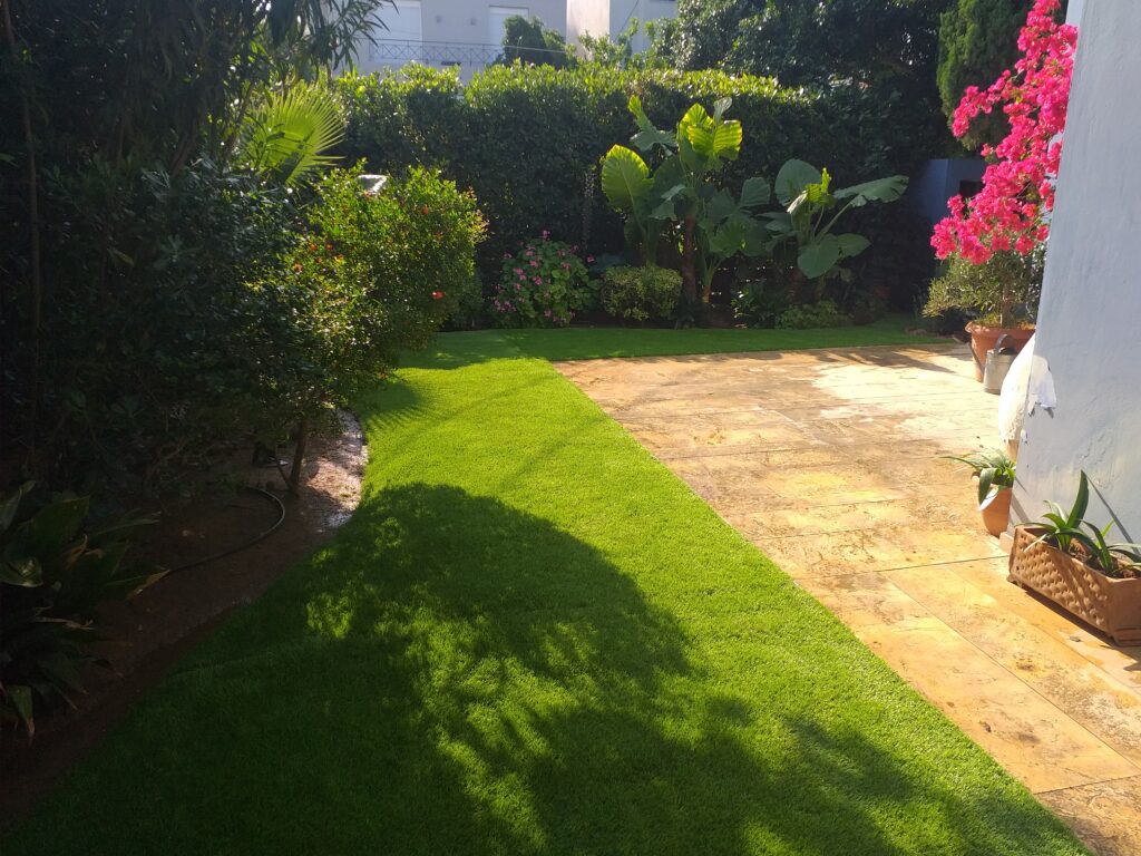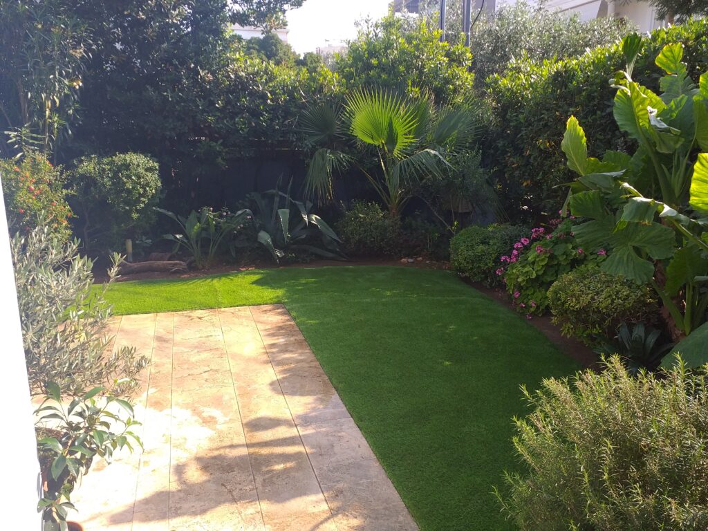 Παρουσιάζουμε την εγκατάσταση συνθετικού χλοοτάπητα με ύψος ίνας 5 εκατοστά σε μονοκατοικία στη Γλυφάδα. Το αποτέλεσμα άψογο και η μεταμόρφωση του χώρου αποδεδειγμένη. Η εικόνα ενός ταλαιπωρημένου χλοοτάπητα λόγω της μειωμένης ηλιοφάνειας και της καταπόνησης από τα κατοικίδια, ανήκει στο παρελθόν. Τα κατοικίδια πλέον δεν κάνουν καμία ζημιά στο χλοοτάπητα και ο καθαρισμός του με το λάστιχο της βρύσης είναι πανεύκολος.