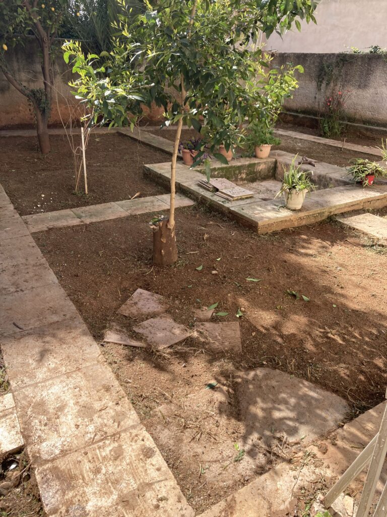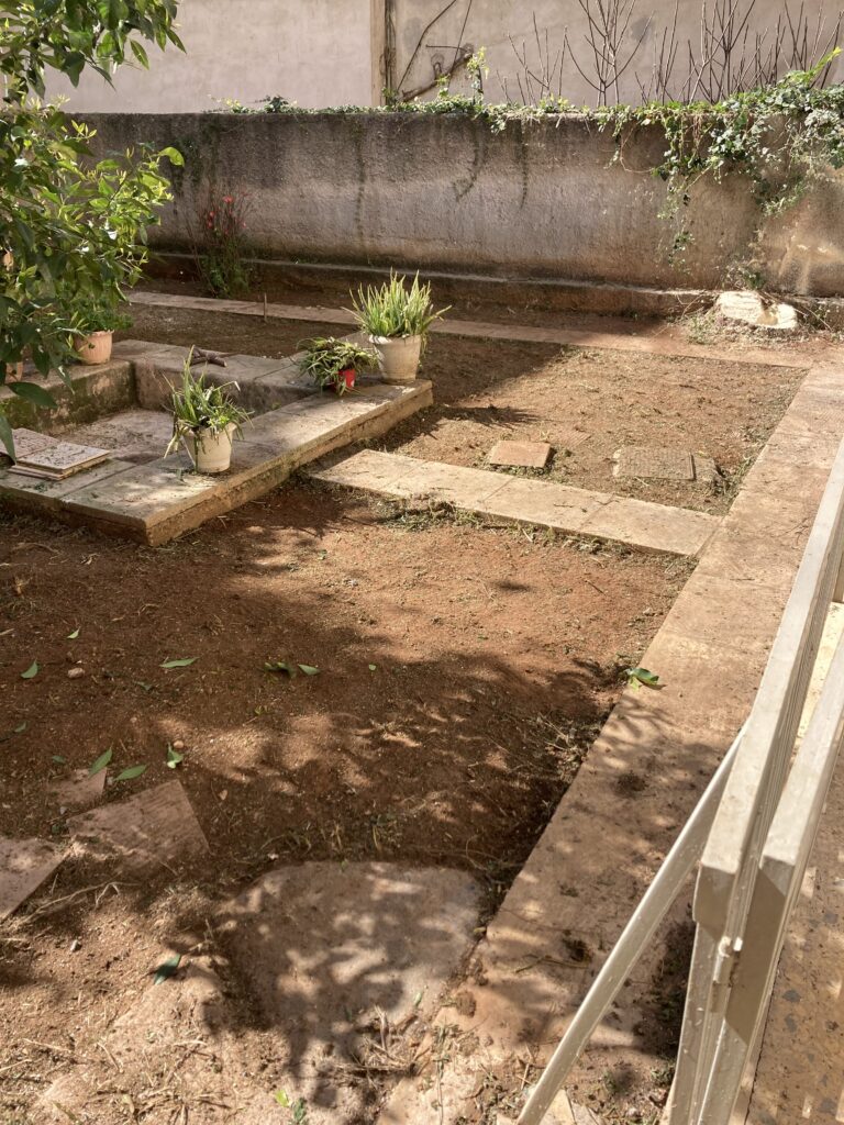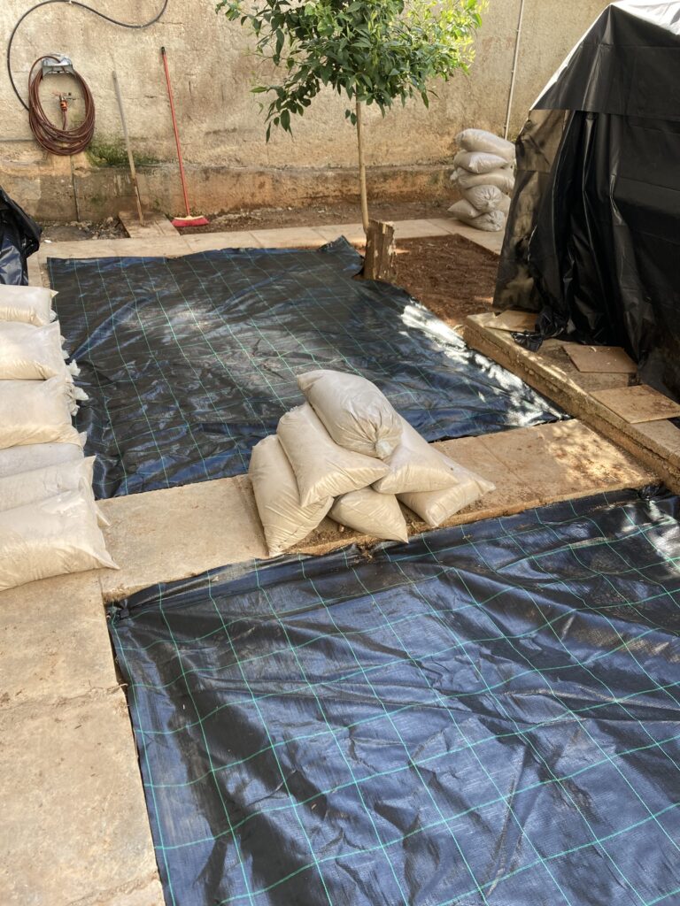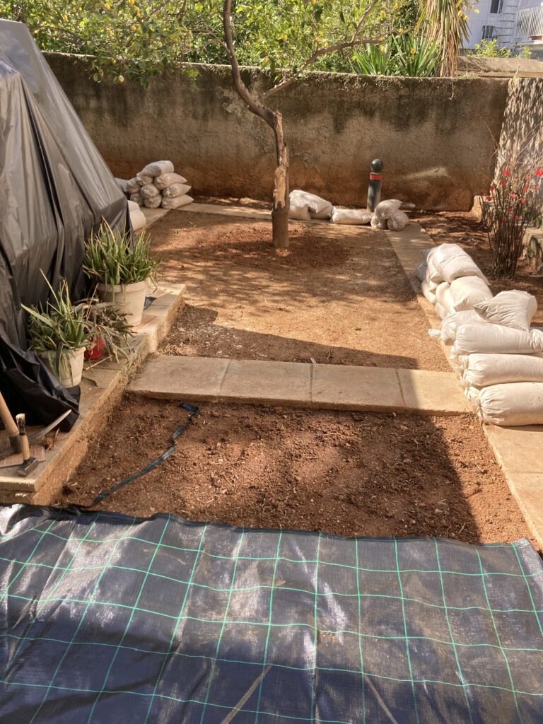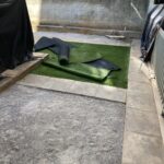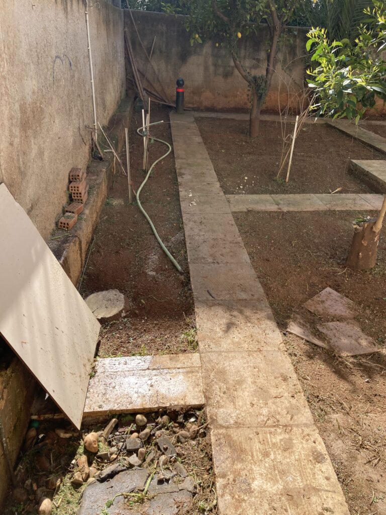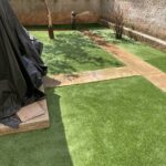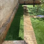 Ακάλυπτος χώρος πολυκατοικίας όπου τα ζιζάνια είχαν την “τιμητική” τους όλο το χρόνο. Έγινε επιμελής καθαρισμός του χώρου, κάλυψη με πανί εδαφοκάλυψης και εφαρμογή άμμου για κάλυψη των ανωμαλιών του εδάφους. Ακολούθησε διάστρωση συνθετικού χλοοτάπητα με ύψος ίνας 35 χιλιοστά.